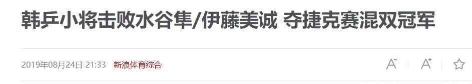 参考资料:新浪体育《韩乒小将击败水谷隼/伊藤美诚 夺捷克赛混双冠军》